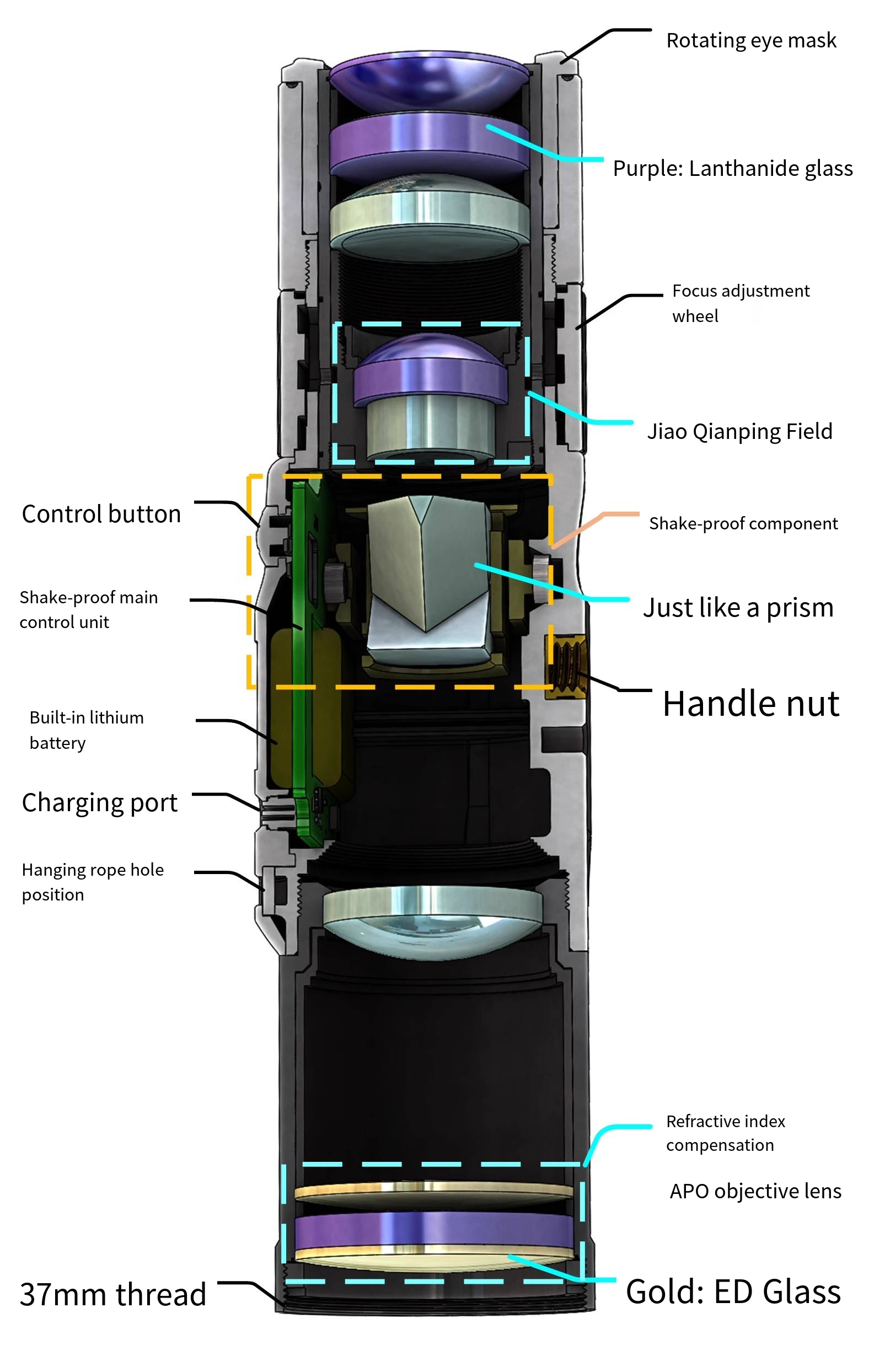We uses the“Near-focus image stabilization” architecture. The image prism head with compact built-in structure can detect motion data through gyroscope method. and run“accurate & Intelligent”Control algorithm, which can significantly eliminate the field of view jitter of the telescope, and you can see further without jitter.